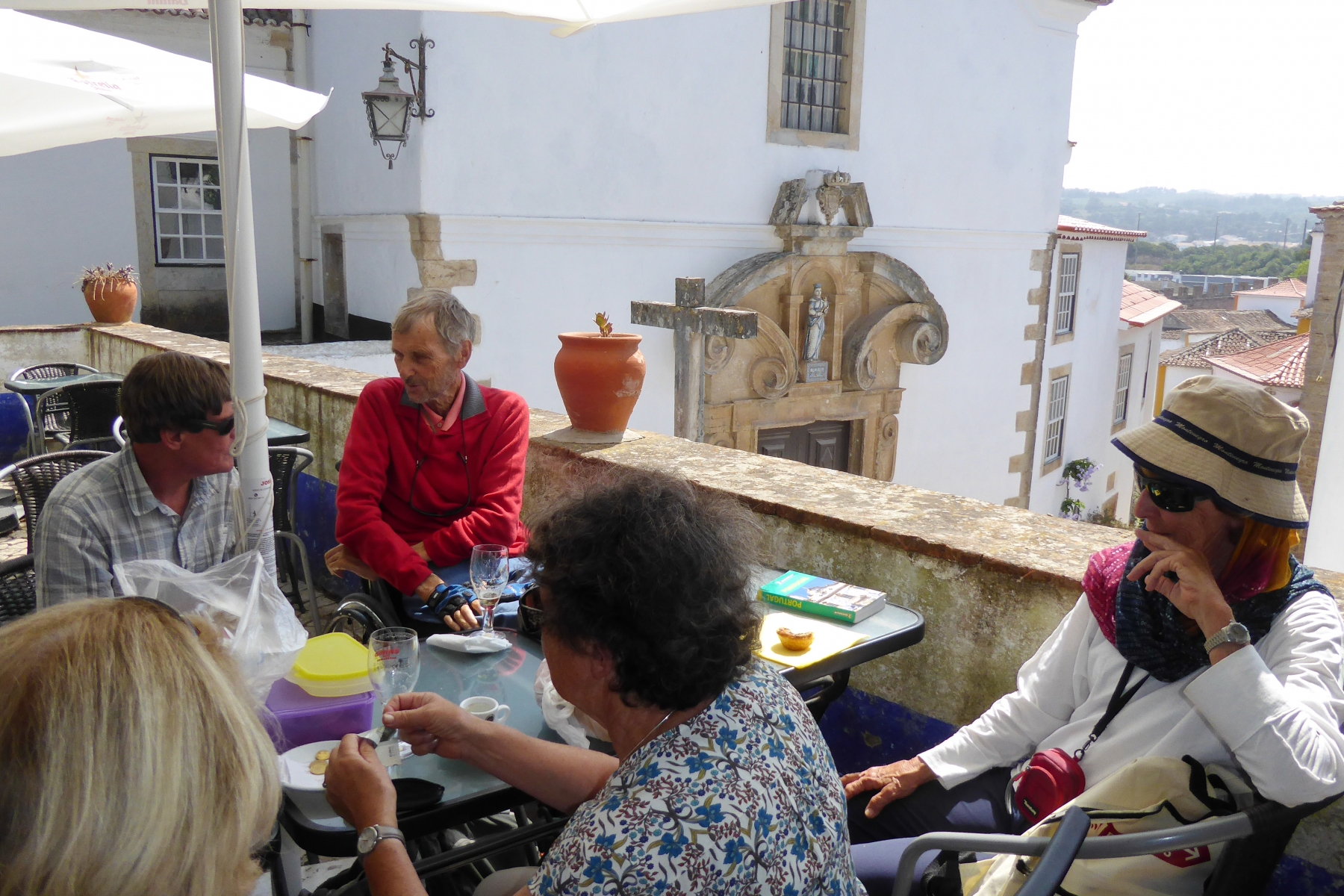 14 septembre : Obidos Jolie ville avec ses maisons blanches, son château, son aqueduc, et ses ruelles commerçantes où on déguste avec Christiane la liqueur de cerise (ginja) dans une petite tasse en chocolat. Piquenique sur la place à l’ombre. 20180914-05 Image 4 parmi 13