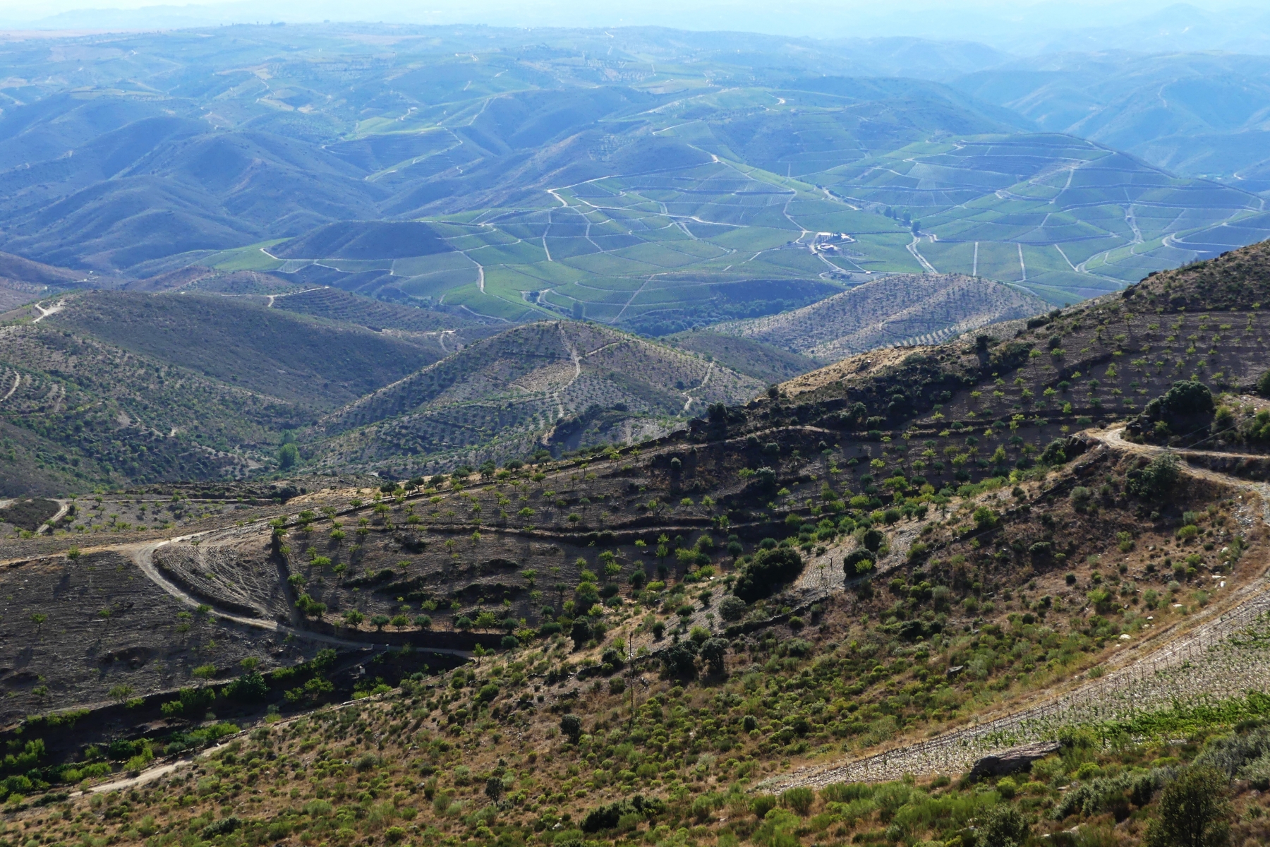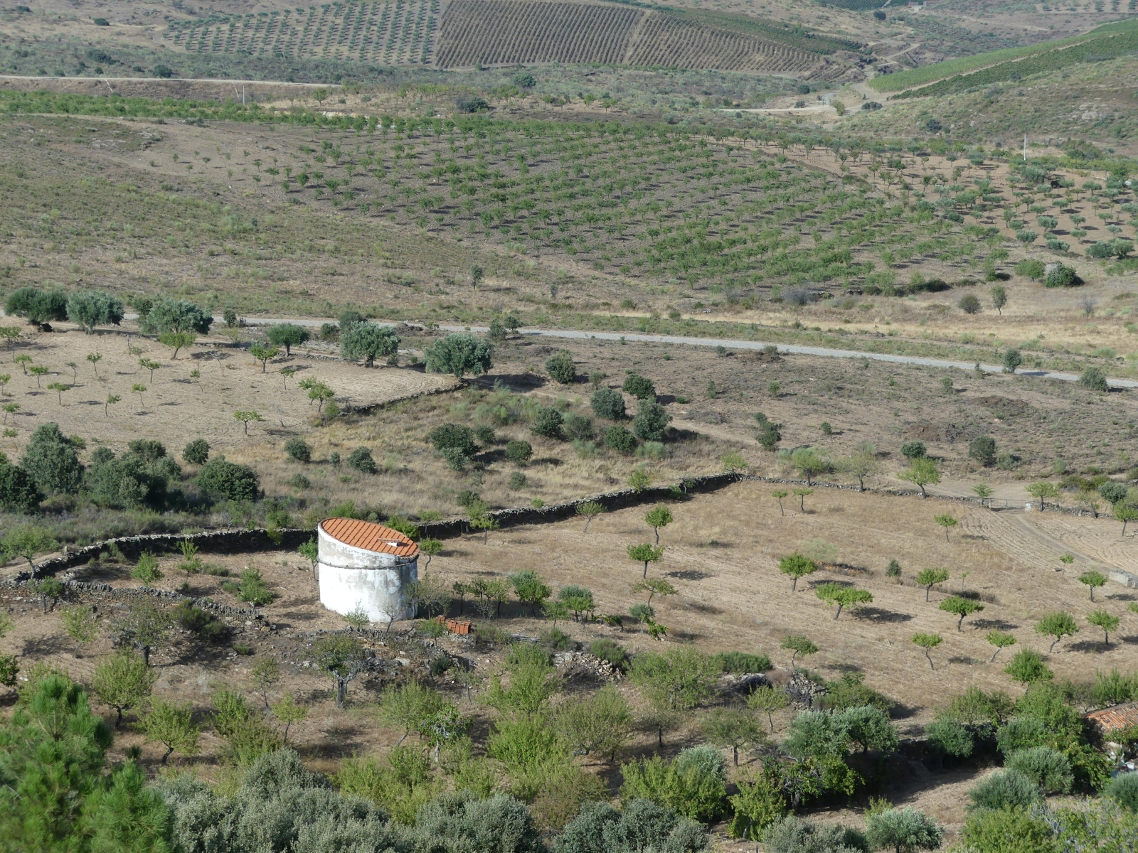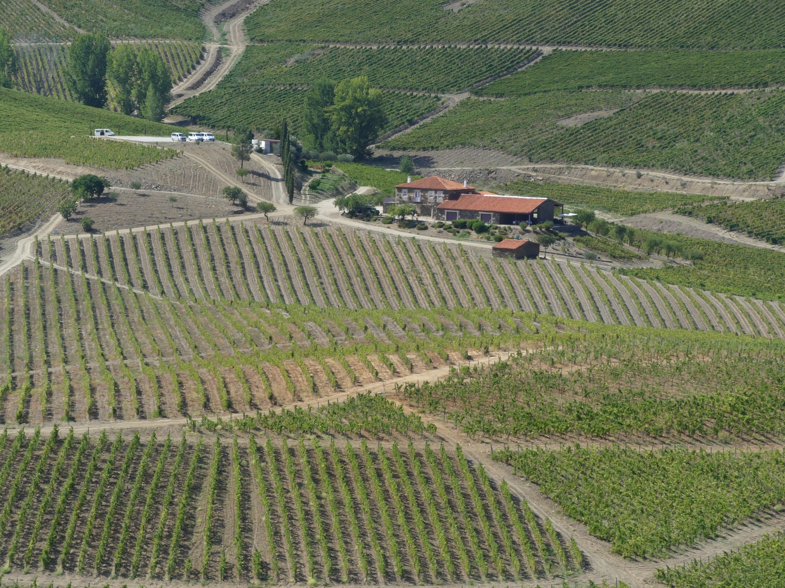 Par une petite route on traverse de très beaux paysages de vignes, de plantations d’oliviers et d’amandiers, avec des pigeonniers et de belles fermes. Plus on approche du Douro, plus cela devient grandiose: vignes en terrasses avec des formes circulaires ou mouvantes qui suivent les pentes du terrain. Le fleuve serpente au milieu des vignes avec ses beaux bateaux typiques.